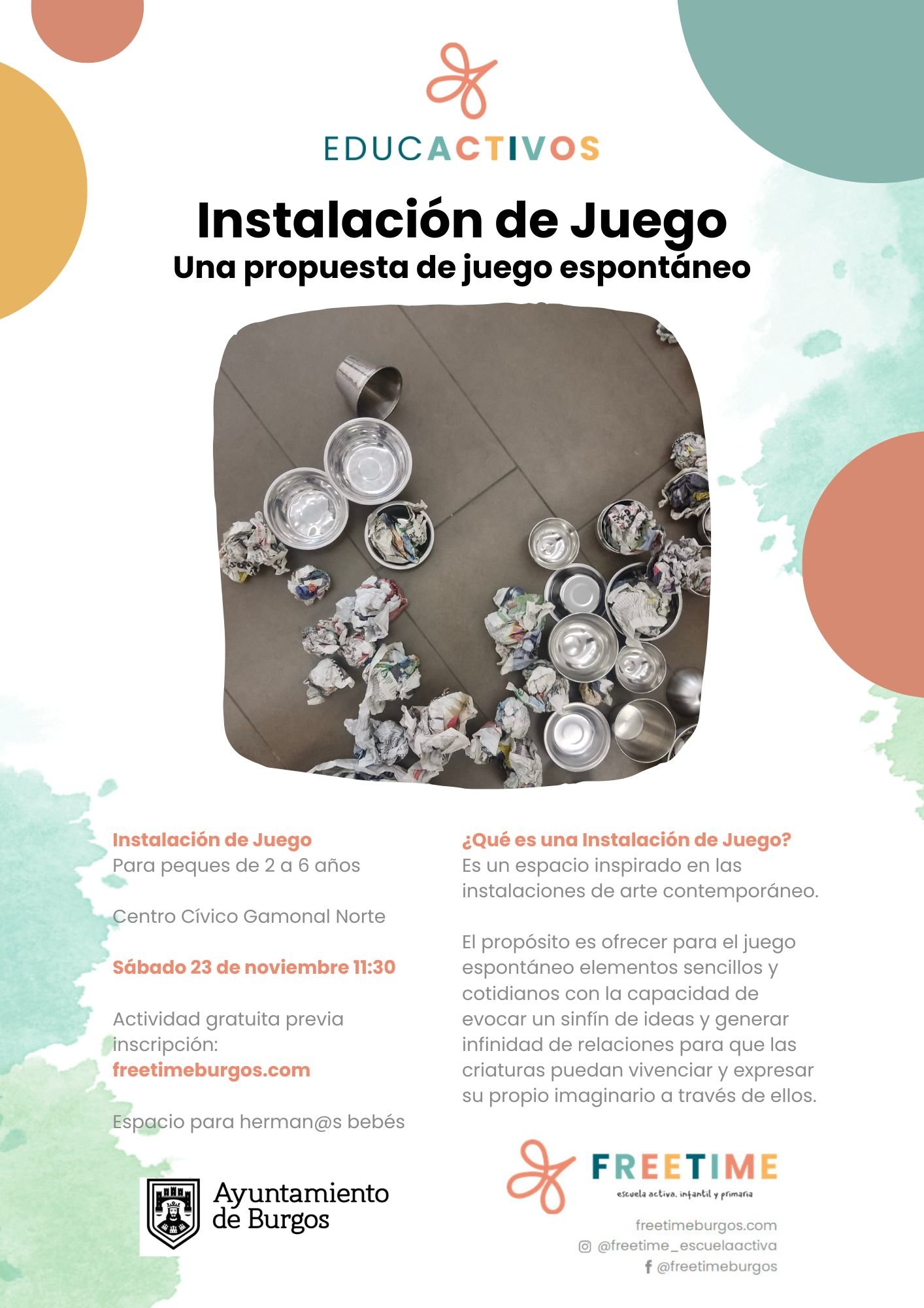 Con estas propuestas desde la Asociación Educativa Freetime queremos poner nuestro granito de arena para contribuir a crear una cultura de infancia en la que bebes, niñas y niños sean consideradas personas competentes y activas.